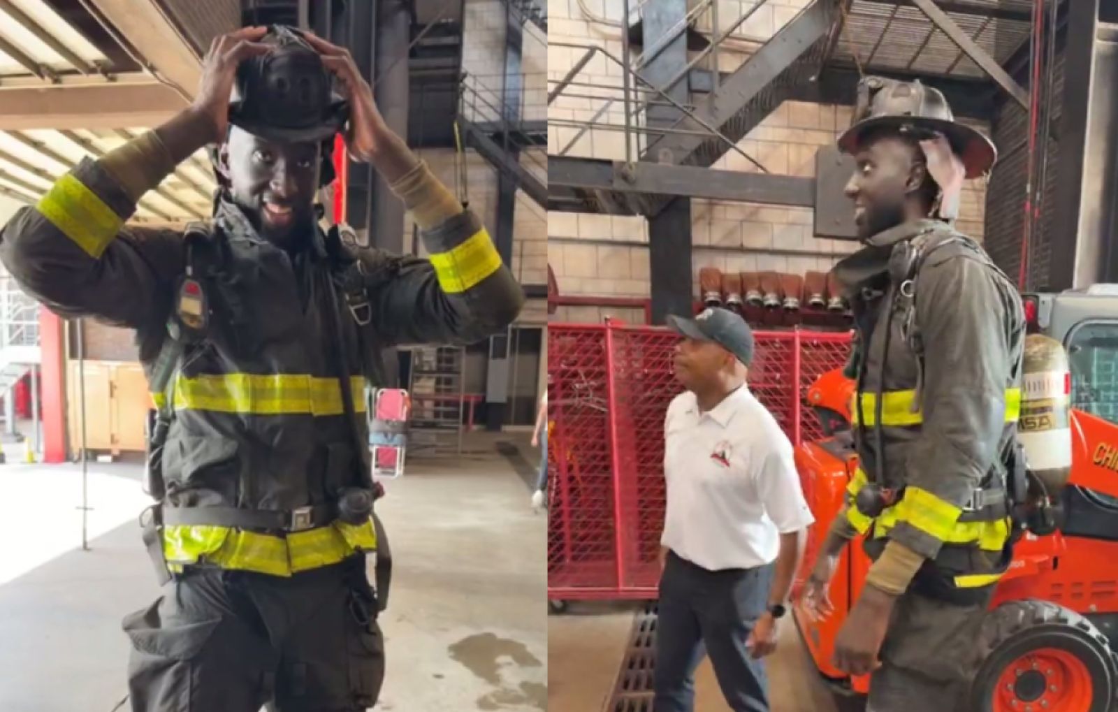 Tacko Fall近日參加芝加哥消防局了的訓練課程。圖/截自推特