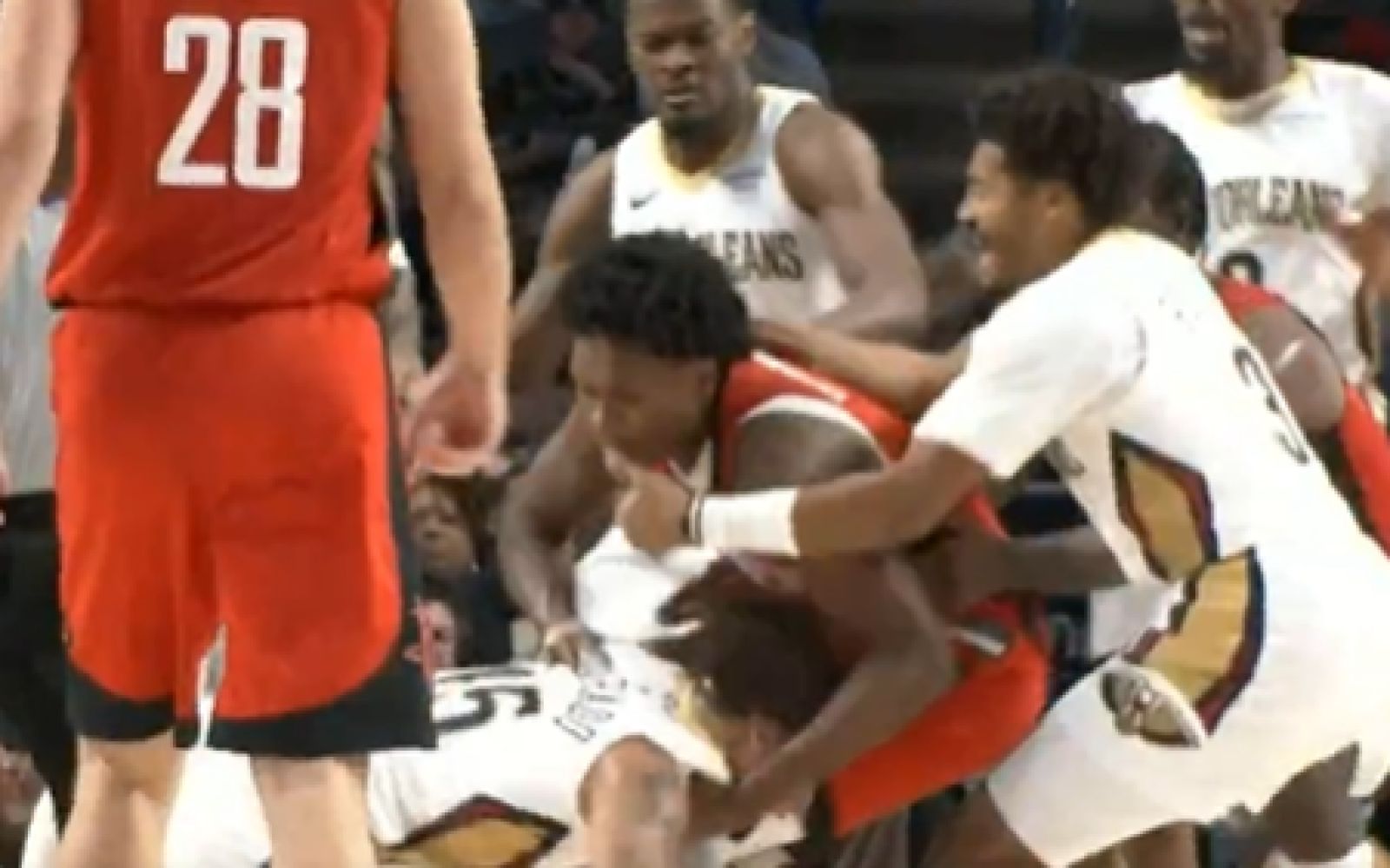 今日鵜鶘與火箭的季前熱身賽持續進行中,而當比賽進行到第二節一半時,Jabari Smith Jr.在一次三分出手不進後,Amen Thompson與Jose Alvarado在籃板衝搶過程中爆發推擠,後續雙方則演變成進一步衝突。