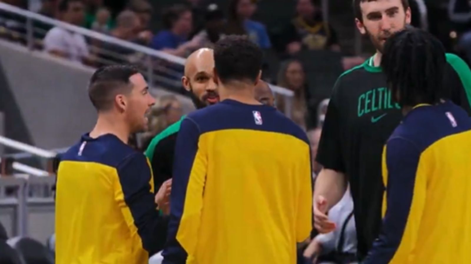 溜馬與塞爾提克比賽的賽前暖身中,Tyrese Haliburton問Derrick White道:「你ACT考幾分?」TJ McConnell則在一旁接話說道:「我考了四次 SAT,沒考 ACT。」