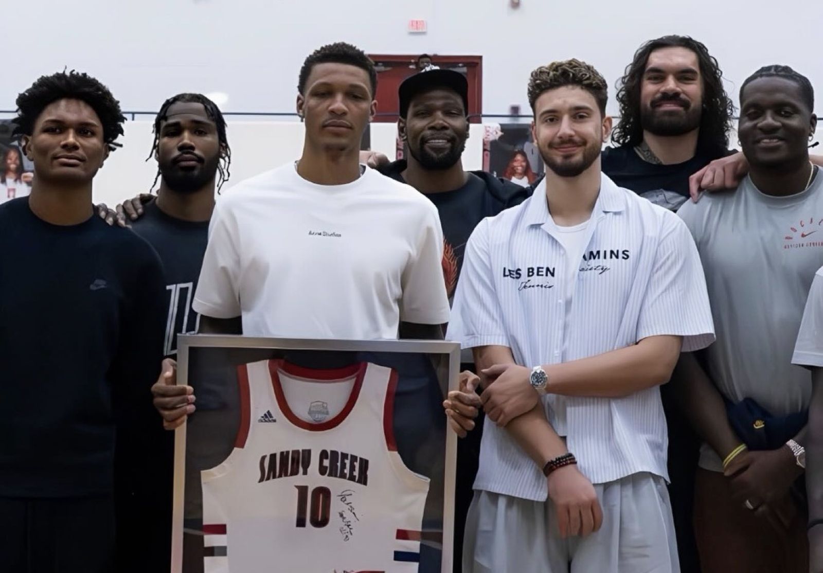 近期Jabari Smith Jr.的高中球衣正式於位居亞特蘭大的母校Sandy Creek高中退役,而包含火箭球員們、教練團與管理層皆出席了這場別具意義的盛會,其中也包含了今夏透過交易轉戰火箭的Kevin Durant。