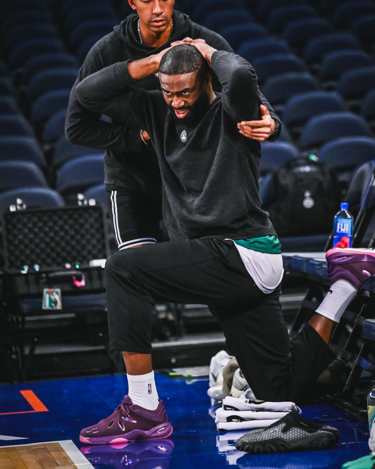 Jaylen Brown fake hairline rubbed off onto OG Anunoby jersey