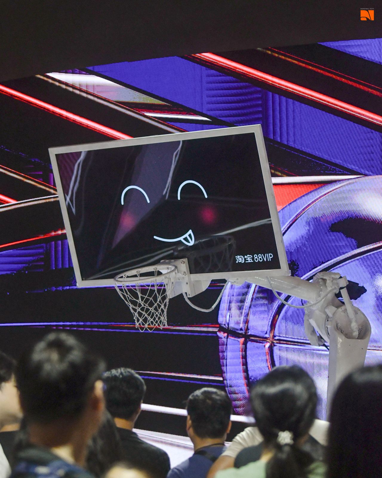 阿里雲於現場秀出帶有嶄新科技的移動互動籃框。圖/籃球筆記
