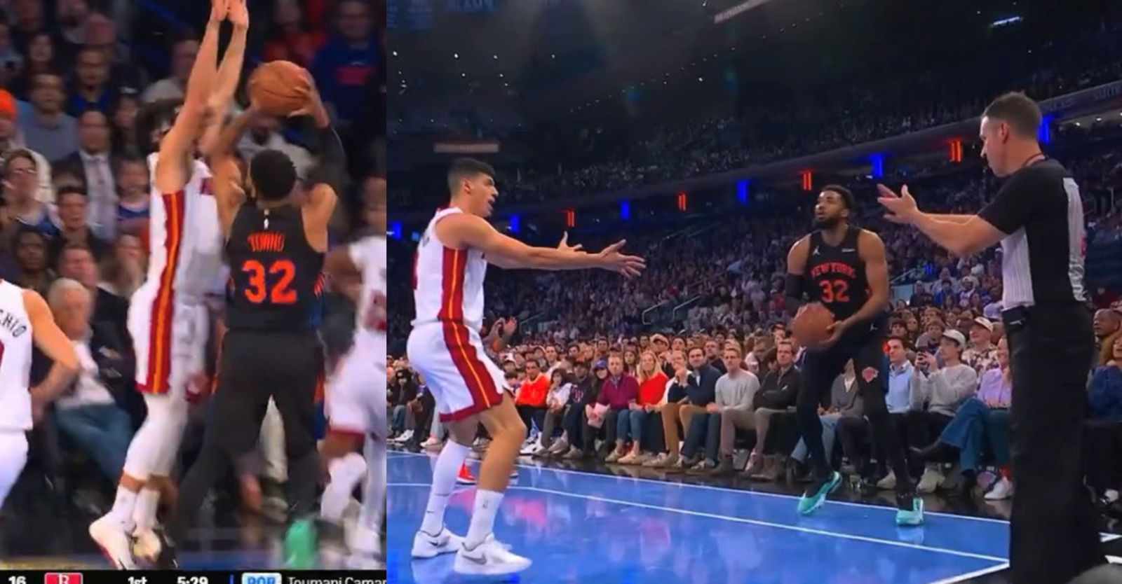 這樣的舉動除了讓防守Towns的Simone Fontecchio向裁判攤手外,熱火總教練Eric Spoelstra也立即向裁判抗議並比出二運的手勢表不滿,不過裁判並未對此舉動做出任何判決。