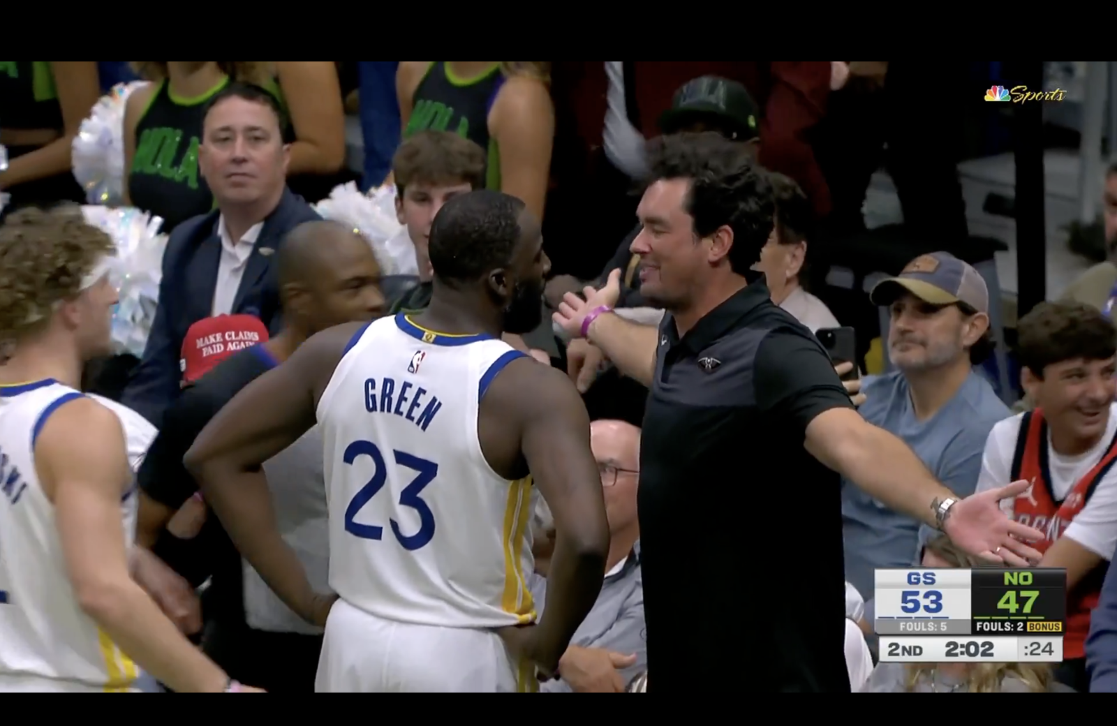 Draymond Green 從來都不是被嘲弄時會退縮的人。在金州勇士隊以 124-106 戰勝紐奧良鵜鶘隊的比賽中,Green 與一名坐在前排的球迷發生了對抗,兩人幾乎胸貼胸地互相大喊,場面一度十分火爆。