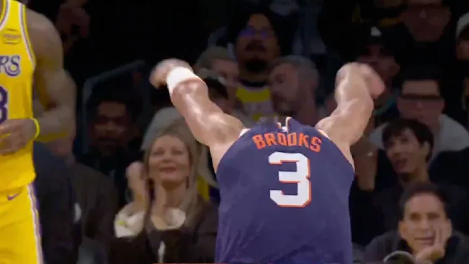 他在第三節結束前得到了 30 分,並在此過程中竭盡所能地挑釁湖人隊的球員。上半場末段在湖人主場,Brooks 跑向前場,在 Luka Dončić 和 LeBron James 急忙回防時完成了一次輕鬆的灌籃。