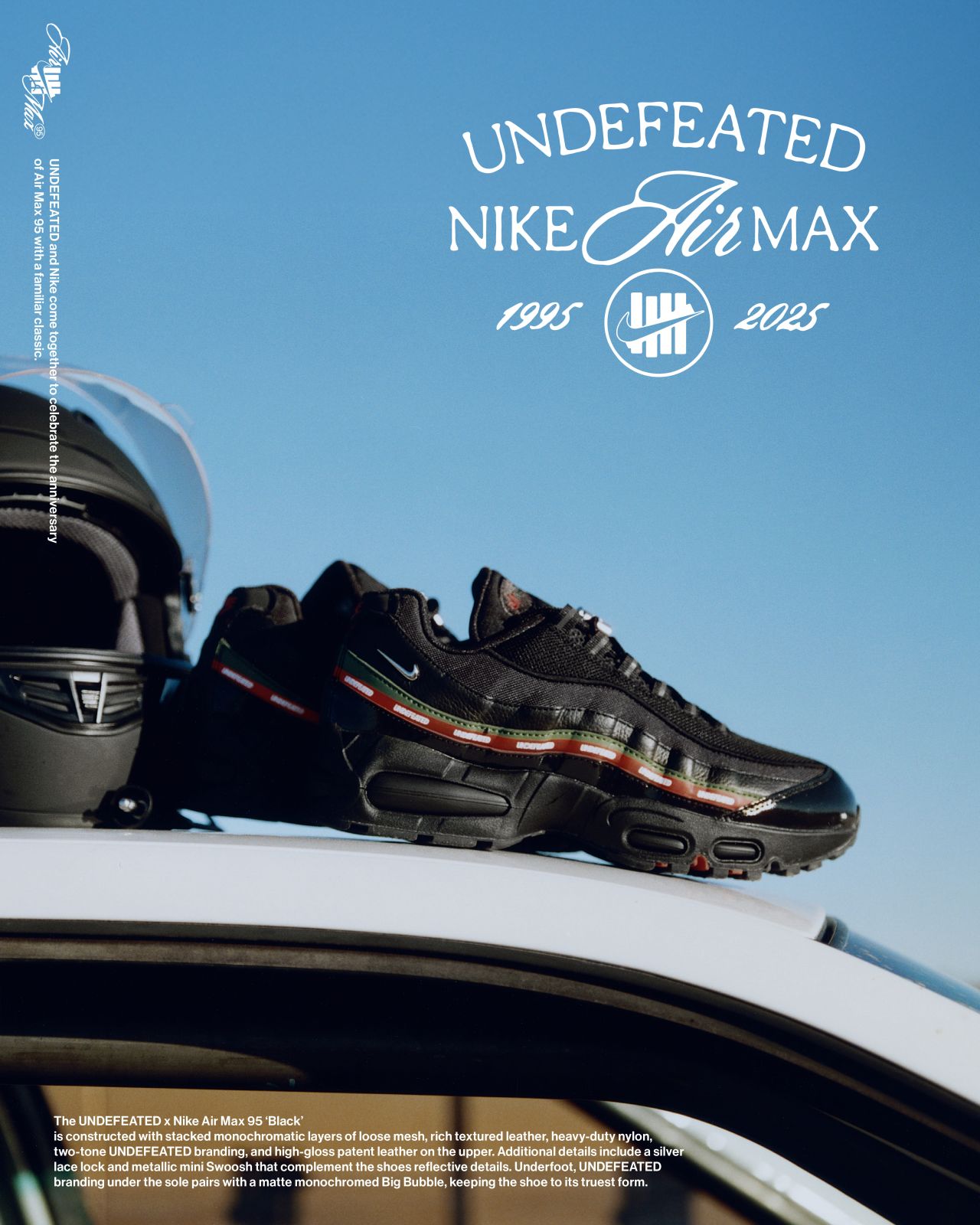 UNDEFEATED 台北與台中門市將於12月7日(星期日)下午2點採先到先得方式販售 UNDEFEATED x Nike Air Max 95,每人限購一雙(黑/白擇一)。