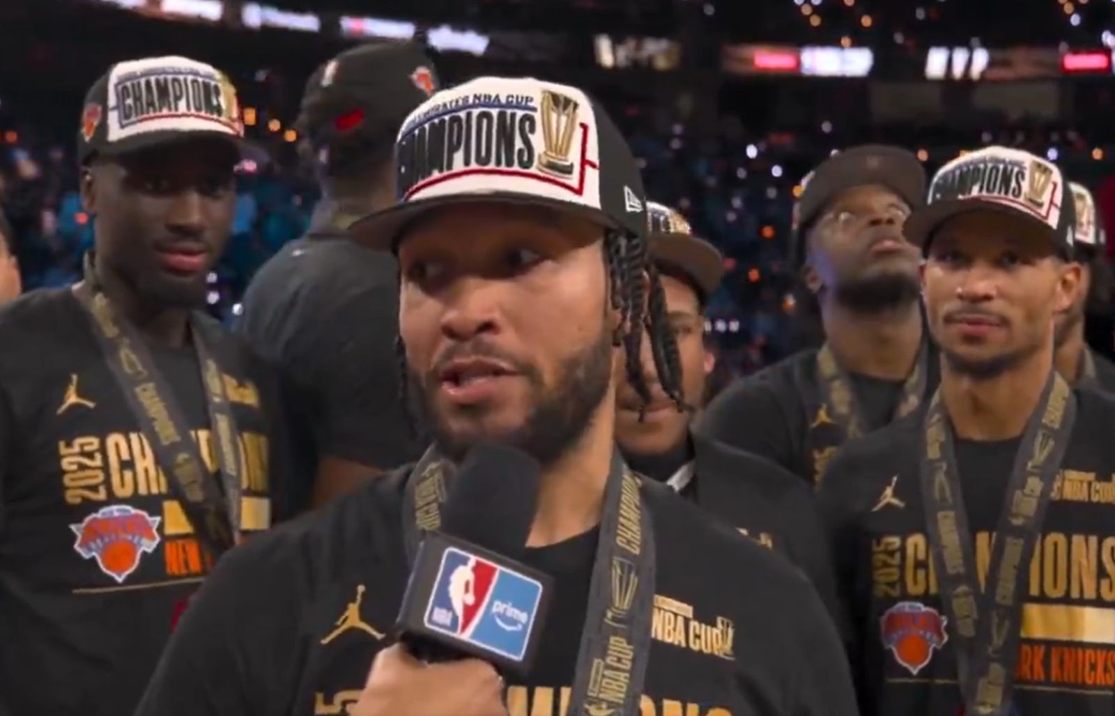 Jalen Brunson immediately credits his teammates after being announced the NBA Cup MVP