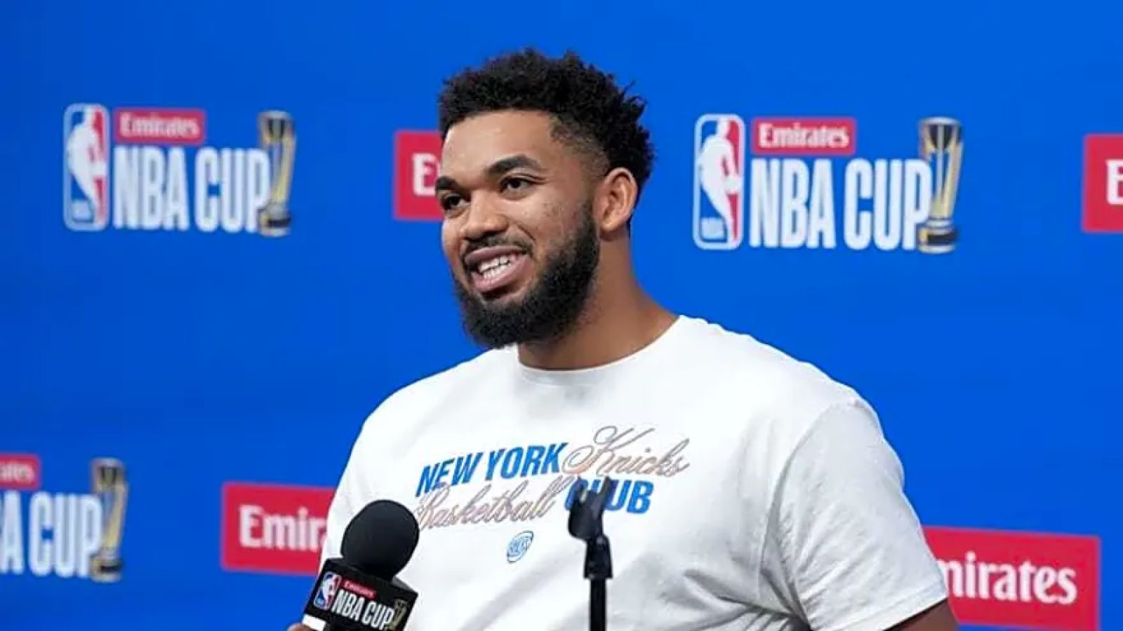 Karl-Anthony Towns says that he plans to donate his $530,000 from winning the NBA Cup to his foundation in the Dominican Republic to help the community and families in financial hardship build homes.