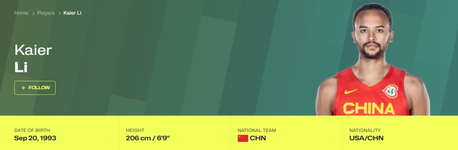 李凱爾於FIBA官網上國籍仍隸屬於中國。圖/截自FIBA官網
