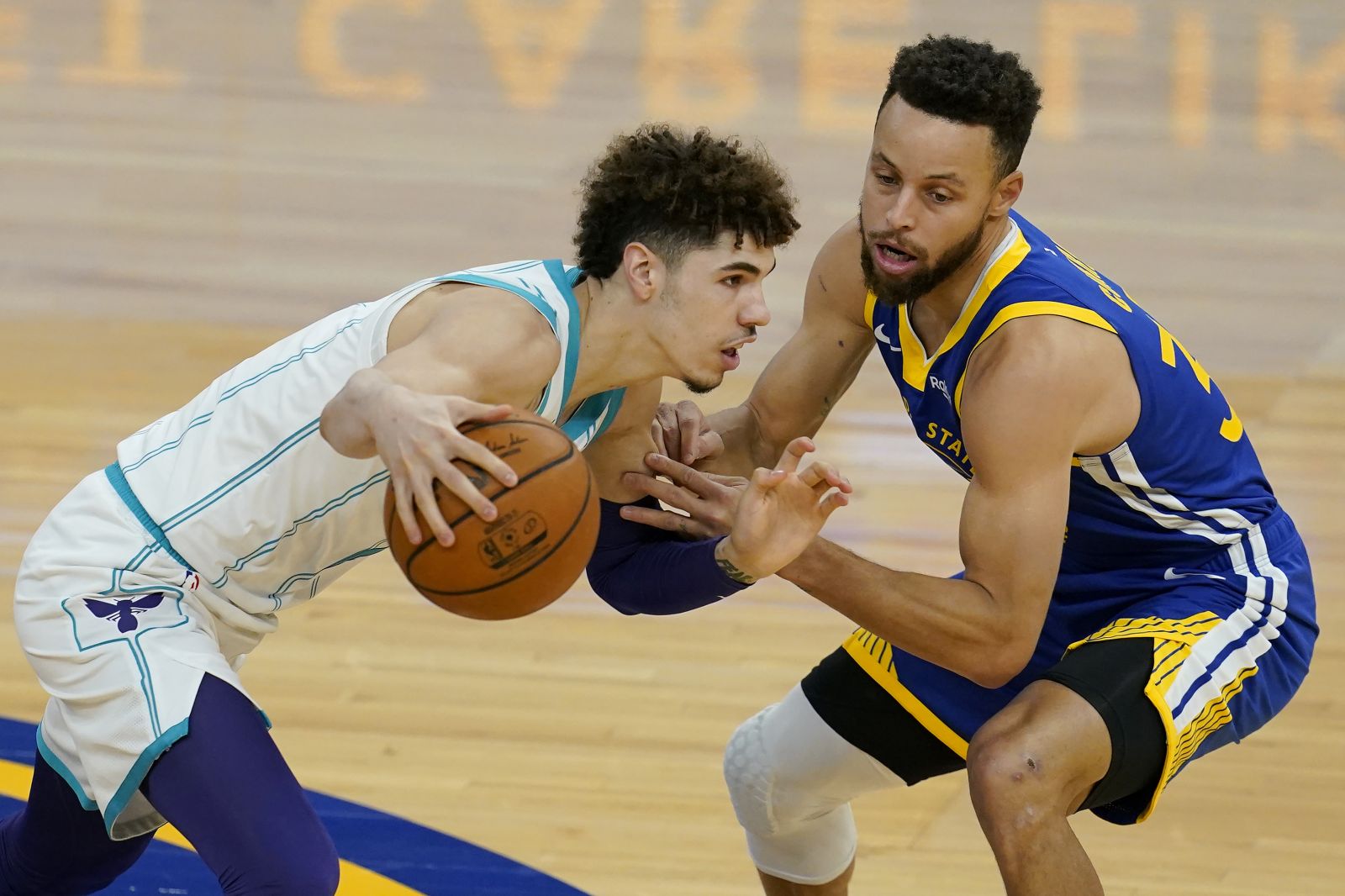 Stephen Curry表示LaMelo Ball有向他請益腳踝傷勢問題的建議。圖/美聯社