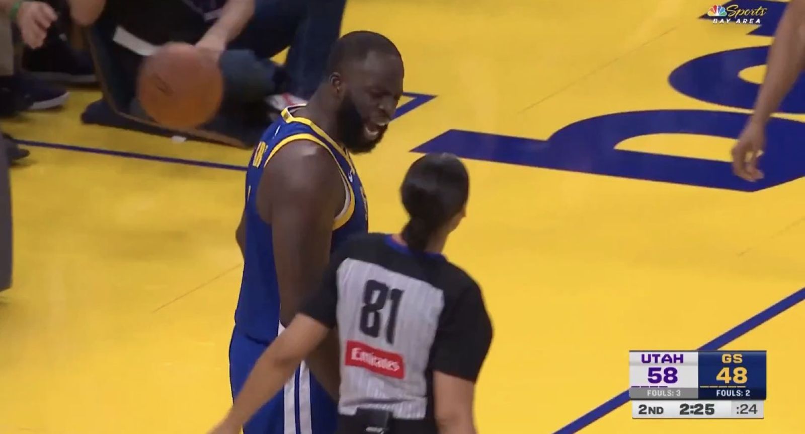 今日勇士對陣爵士的比賽中,第二節Draymond Green在爵士一次進攻中向裁判抱怨,結果立即領到了技術犯規。後續Draymond Green持續和裁判抱怨,也再度領到了技術犯規,最終遭驅逐出場。