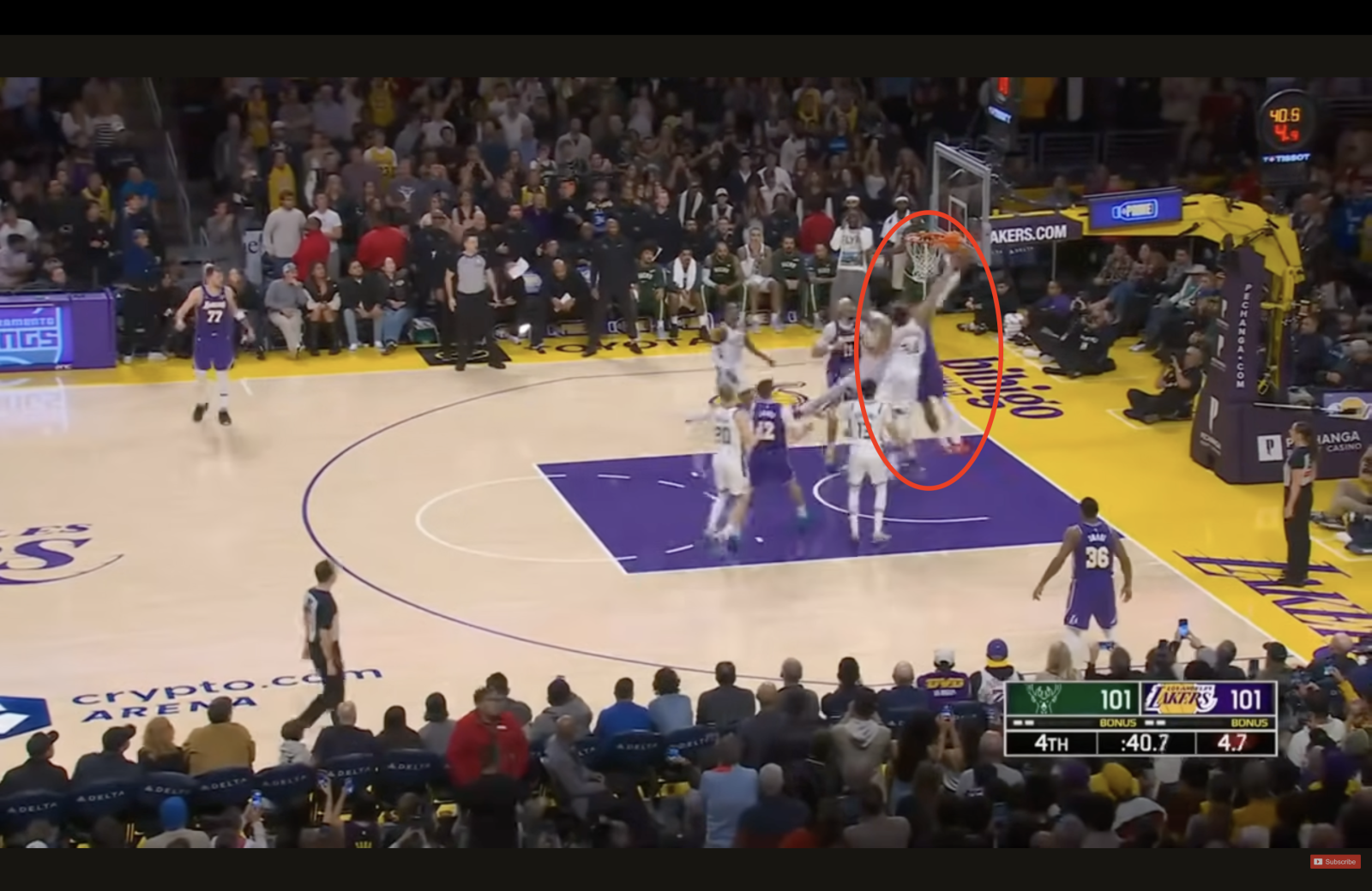 在週五晚間的比賽中,Giannis Antetokounmpo 於最後一分鐘連續兩個回合分別火鍋封阻了 LeBron James 並完成抄截,幫助密爾瓦基公鹿在一度丟掉領先優勢後重新穩住陣腳,最終以 105-101 擊敗洛杉磯湖人。