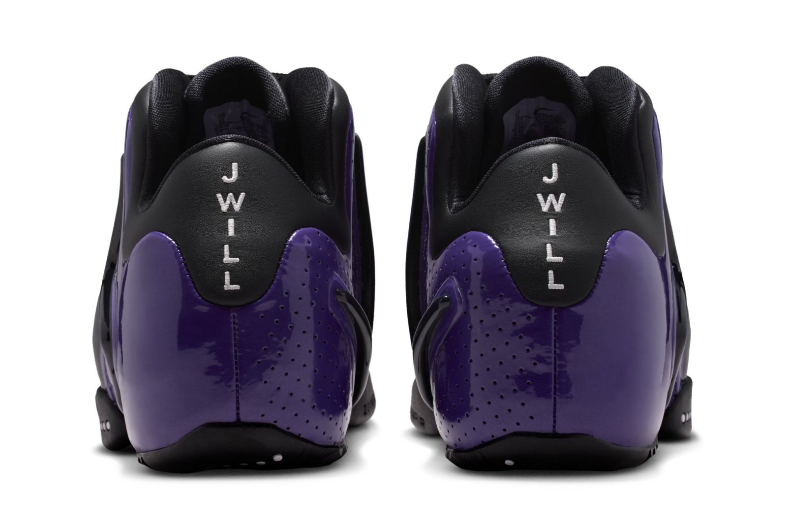 從這雙復刻鞋款的實物照來看,整體設計幾乎與 Williams 在 2000-01 賽季 所穿的版本如出一轍。鞋身採用金屬紫色為主調,鞋舌上繡有他在國王時期的背號,後跟則標示他的暱稱「J Will」。