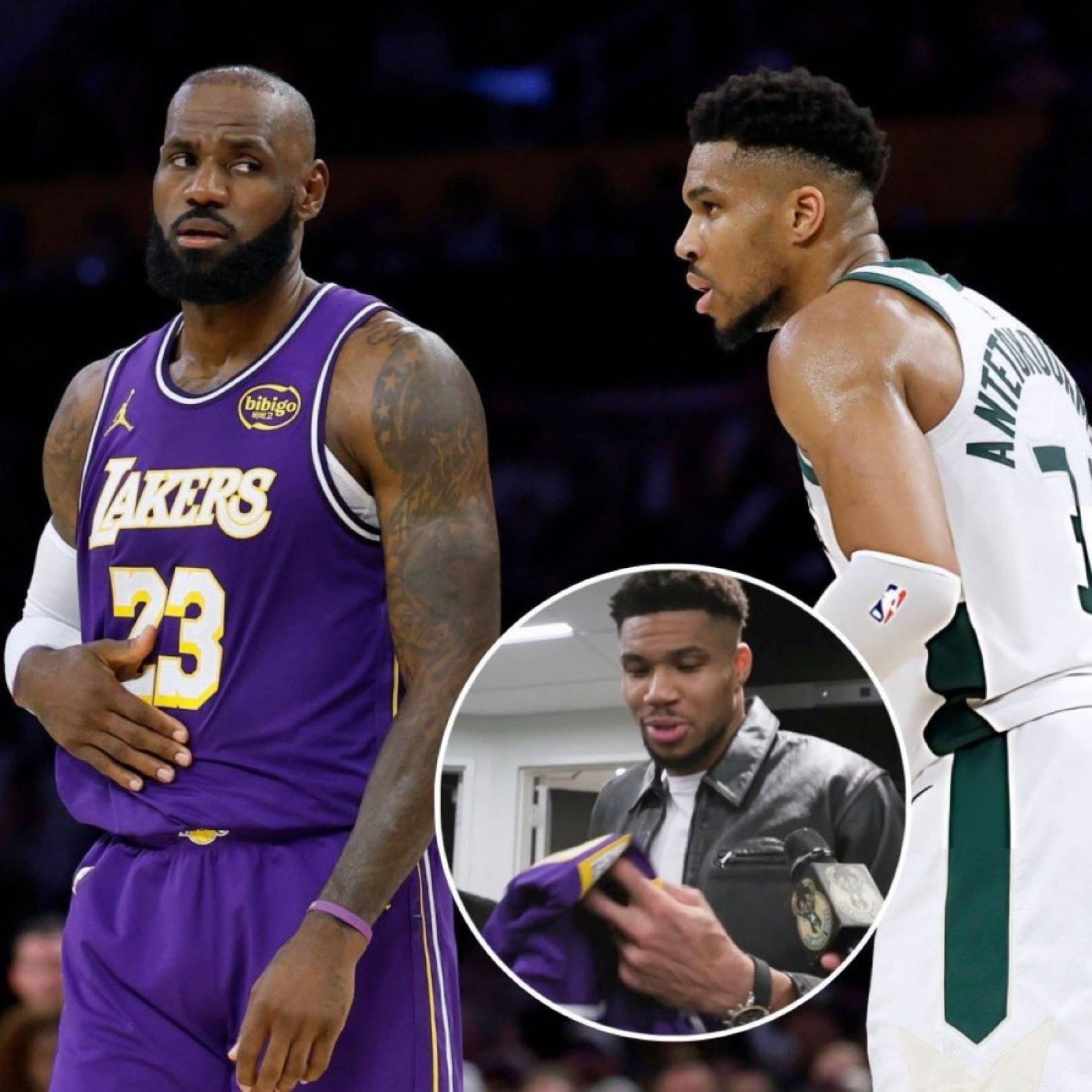賽後,這兩位超級巨星分享了一個感人的時刻。Giannis Antetokounmpo 向 LeBron James 請求並得到了一件簽名的湖人隊紫色 23 號球衣,將其納入個人收藏。