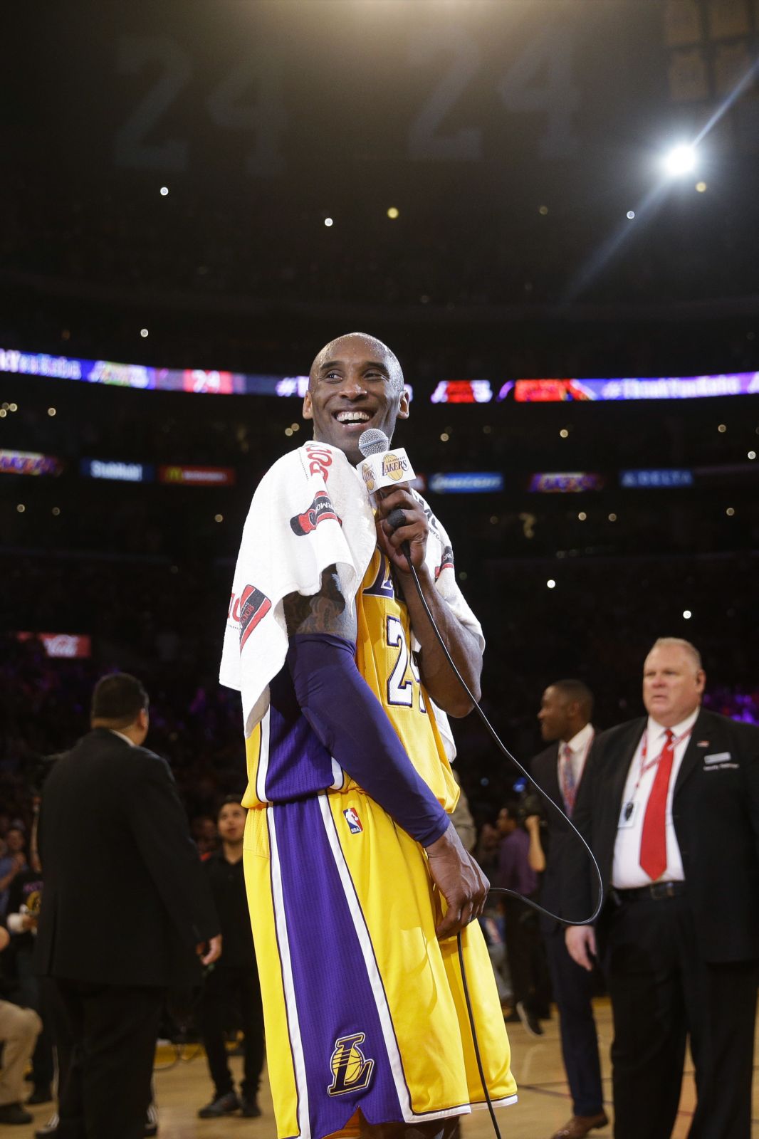 這場在Staples Center對陣猶他爵士隊的告別戰,吸引了全世界的目光。比賽氣氛極其熱烈,球迷們從下午開始就聚集在球場周圍高喊他的名字。儘管湖人隊該賽季戰績不佳,但那一晚所有的焦點都集中在Kobe身上。