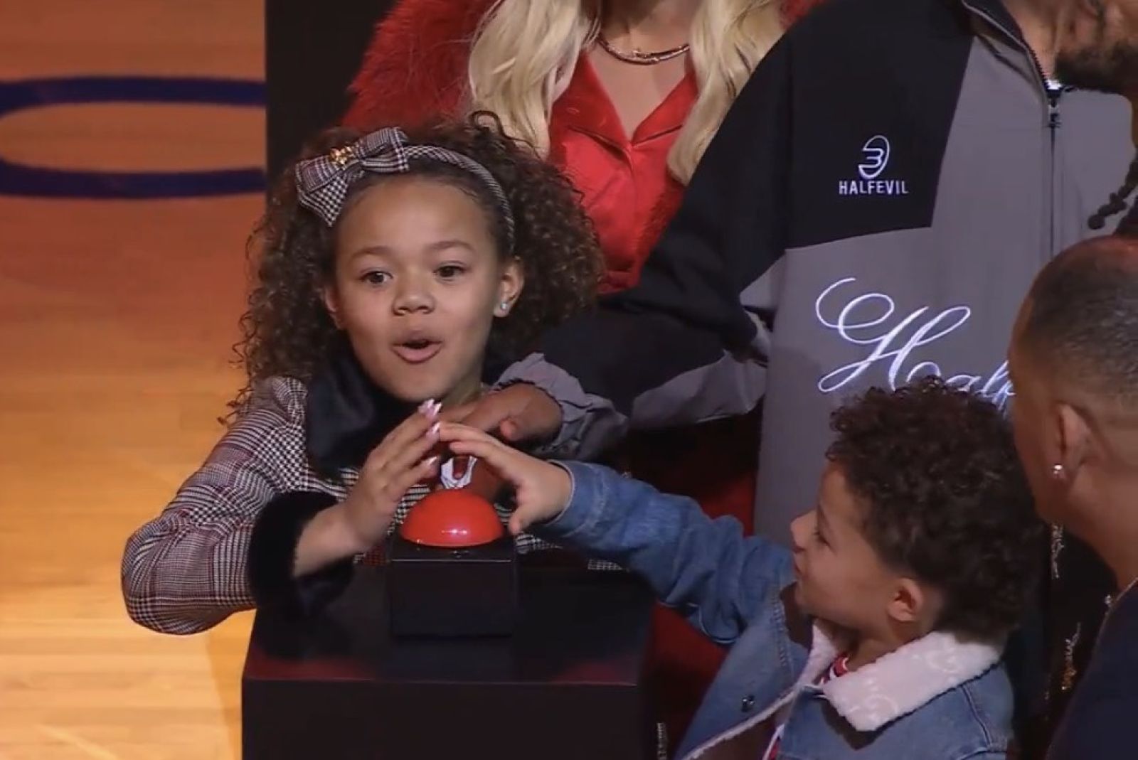 Rose的孩子們親自按下1號球衣亮相的按鈕。圖/截自推特