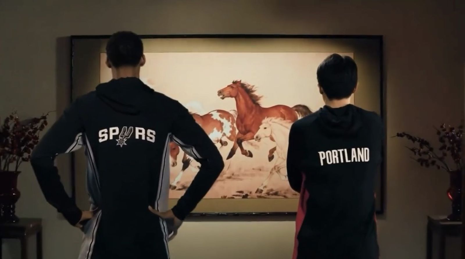 NBA官方配文發布道:「馬的熱血基因,奔騰千年不停歇!2026丙午馬年,任嘉倫、楊瀚森、Victor Wembanyama跨界集結,帶你解鎖馬力全開的籃球新體驗!神秘古董店裡,百駿化身賽場奇兵;水墨翻湧間,運球、過人、扣籃的招式鋒芒畢露;巨人世界中,奔馬助力得以擊敗強敵!新歲願你我都乘上駿馬之勢,「嘉」業騰飛、「楊」帆起航、「馬」力全開!」