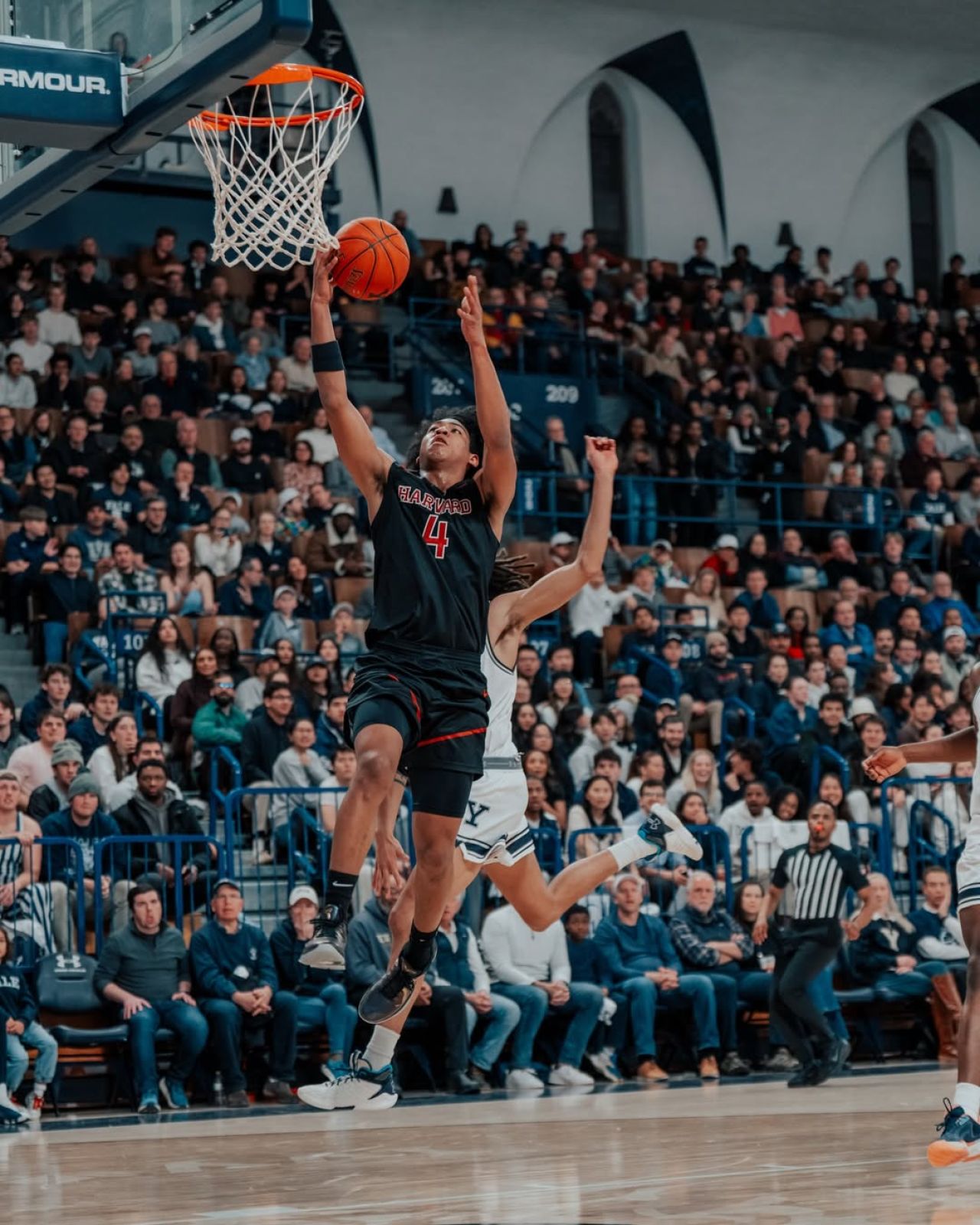 本場比賽最後時刻哈佛以64-65落後耶魯,賀博接獲球後將球傳給隊友Tey Barbour,Tey Barbour也命中了打板準絕殺三分,留下了3.9秒的時間給耶魯,最終耶魯反撲無果、哈佛也就此收下勝利。