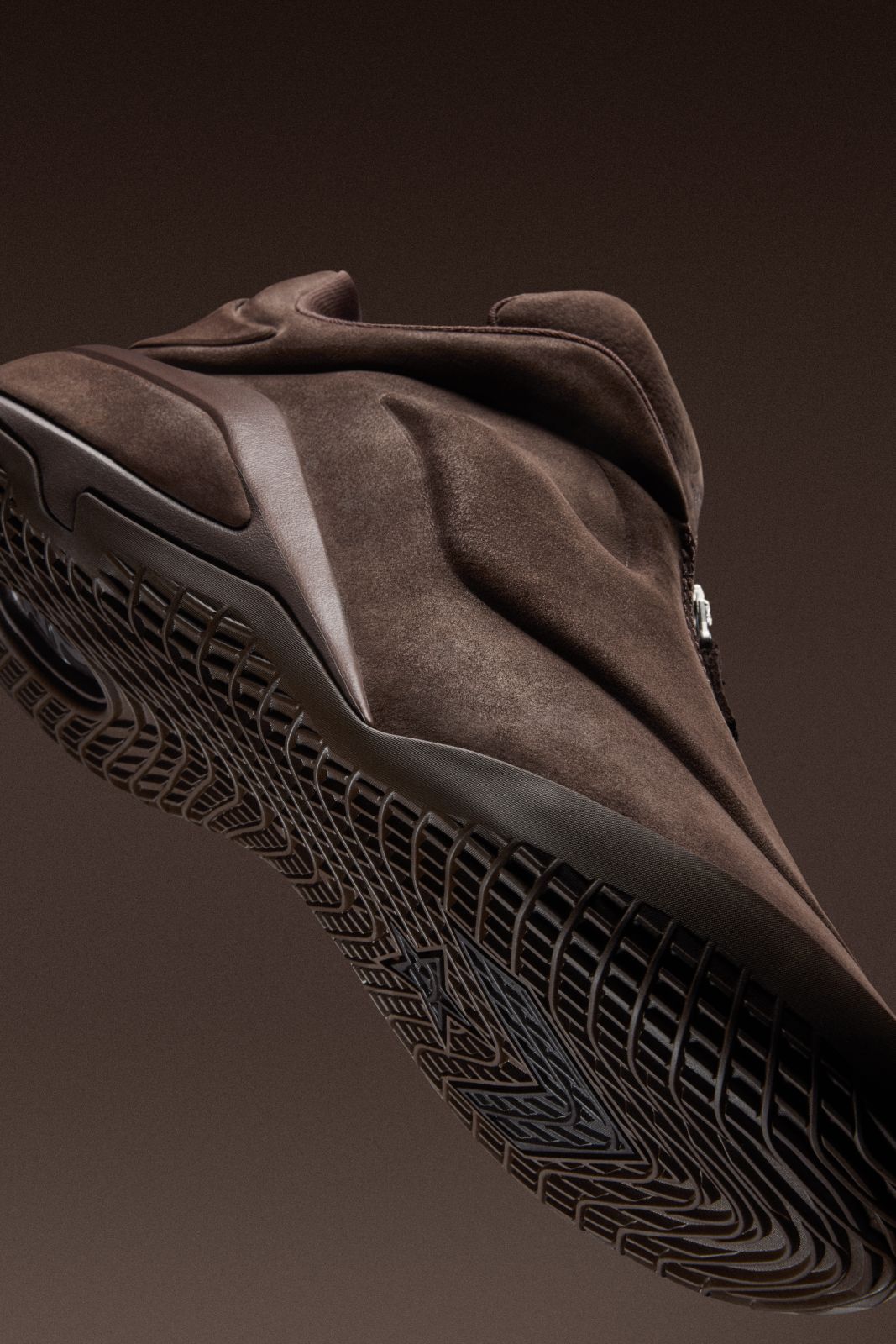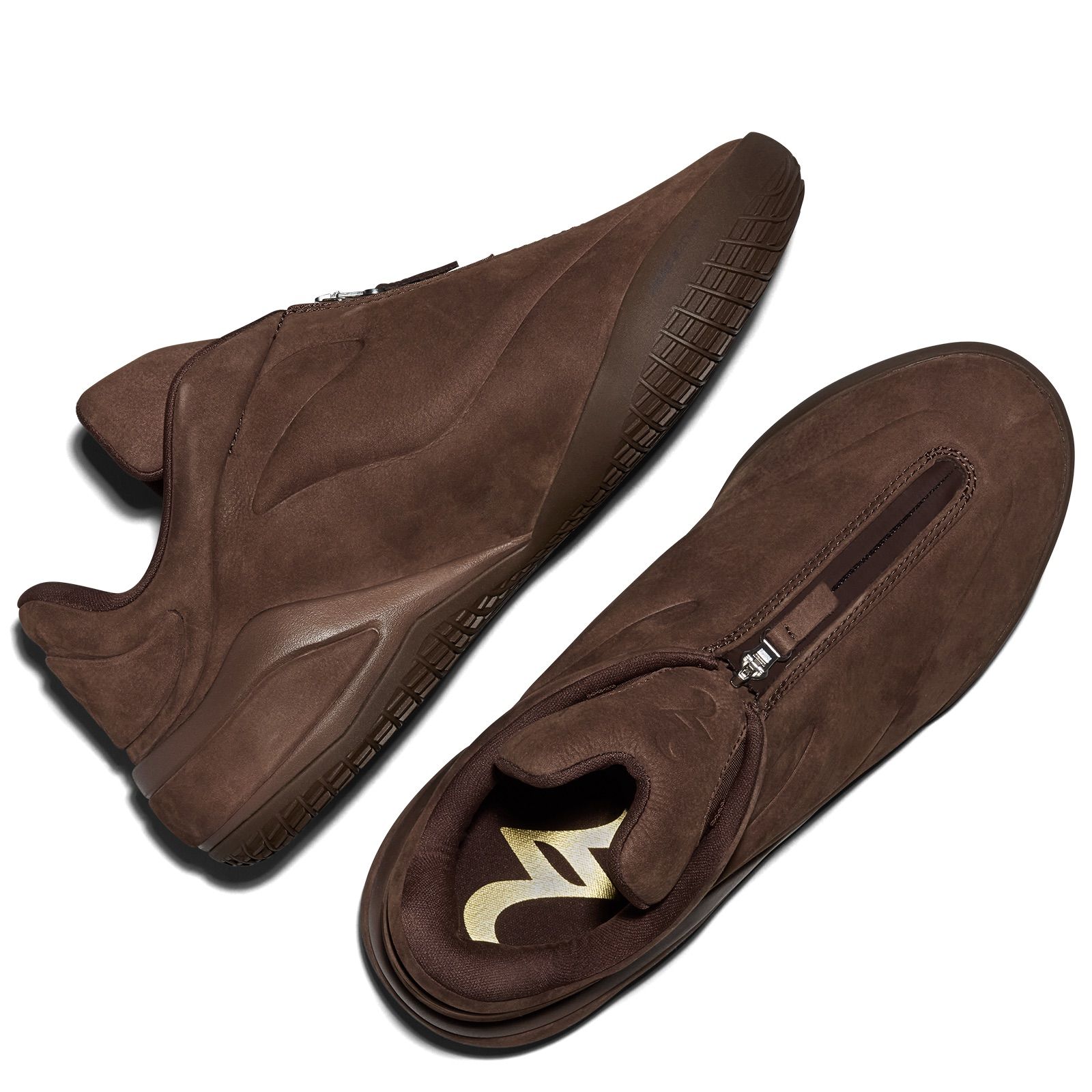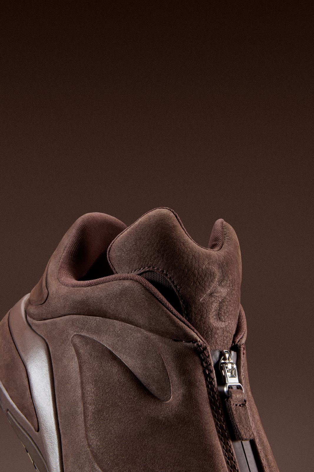 設計靈感深度汲取自Shai Gilgeous-Alexander在球場上沉穩掌控比賽的領袖風範,並將其凝練為獨特的視覺語彙:鞋身呈現深邃的棕褐色調,選用優質翻毛皮革材質搭配立體結構覆蓋層,詮釋其從容內斂、游刃有餘的球場姿態,塑造出貫穿場內外的自信輪廓。