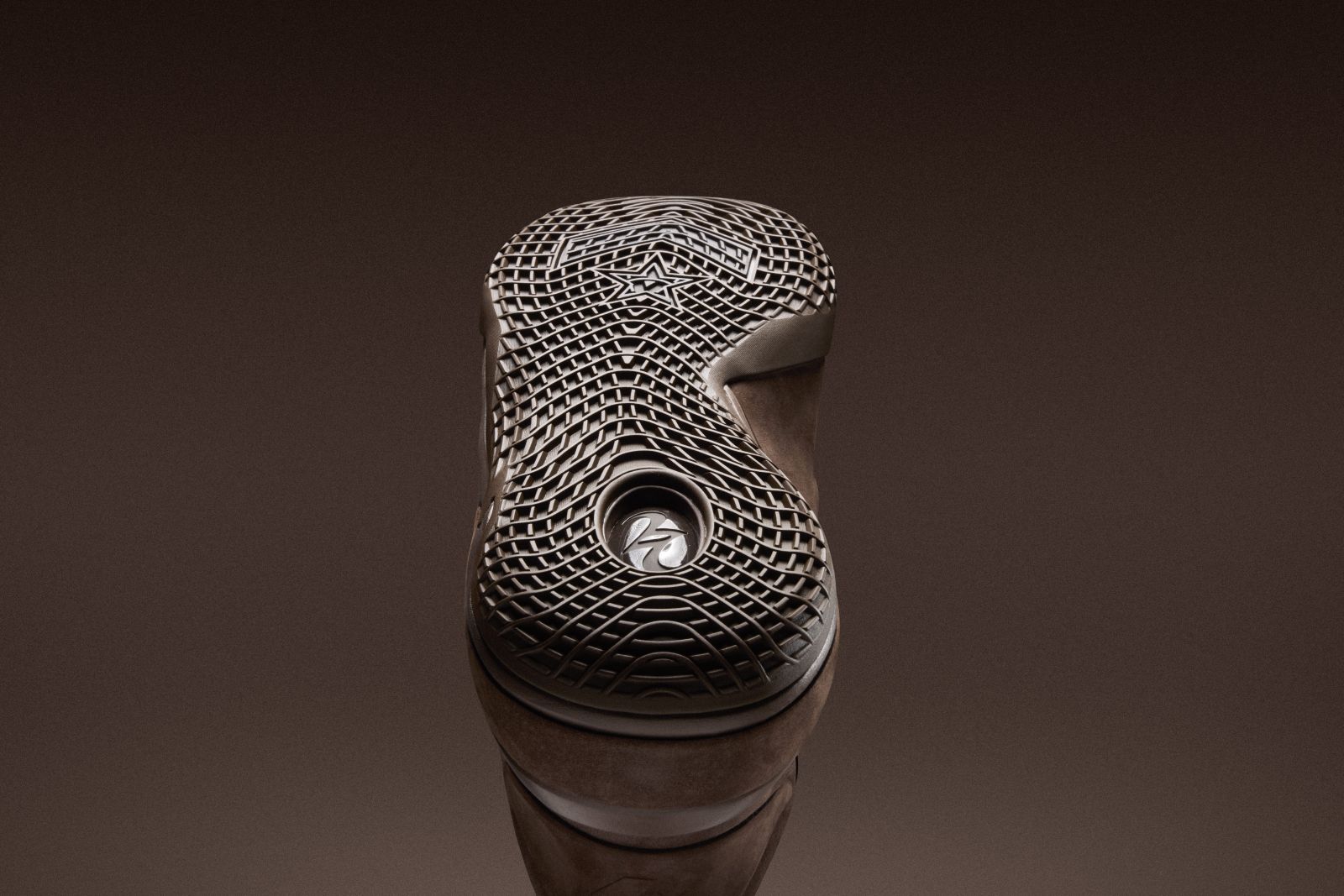 此次「松露」配色從奢侈品皮件與手工巧克力中汲取靈感,經過精心調配的深棕色調,完美復刻了松露巧克力般的醇厚質感,賦予鞋面溫潤且立體的視覺效果。這種深度的色彩不僅突顯了材質的天然紋理,更強化了整雙鞋履的精湛工藝,同時也呼應了SGA在球場上「藏鋒於靜、伺機而動」的沉穩力量。