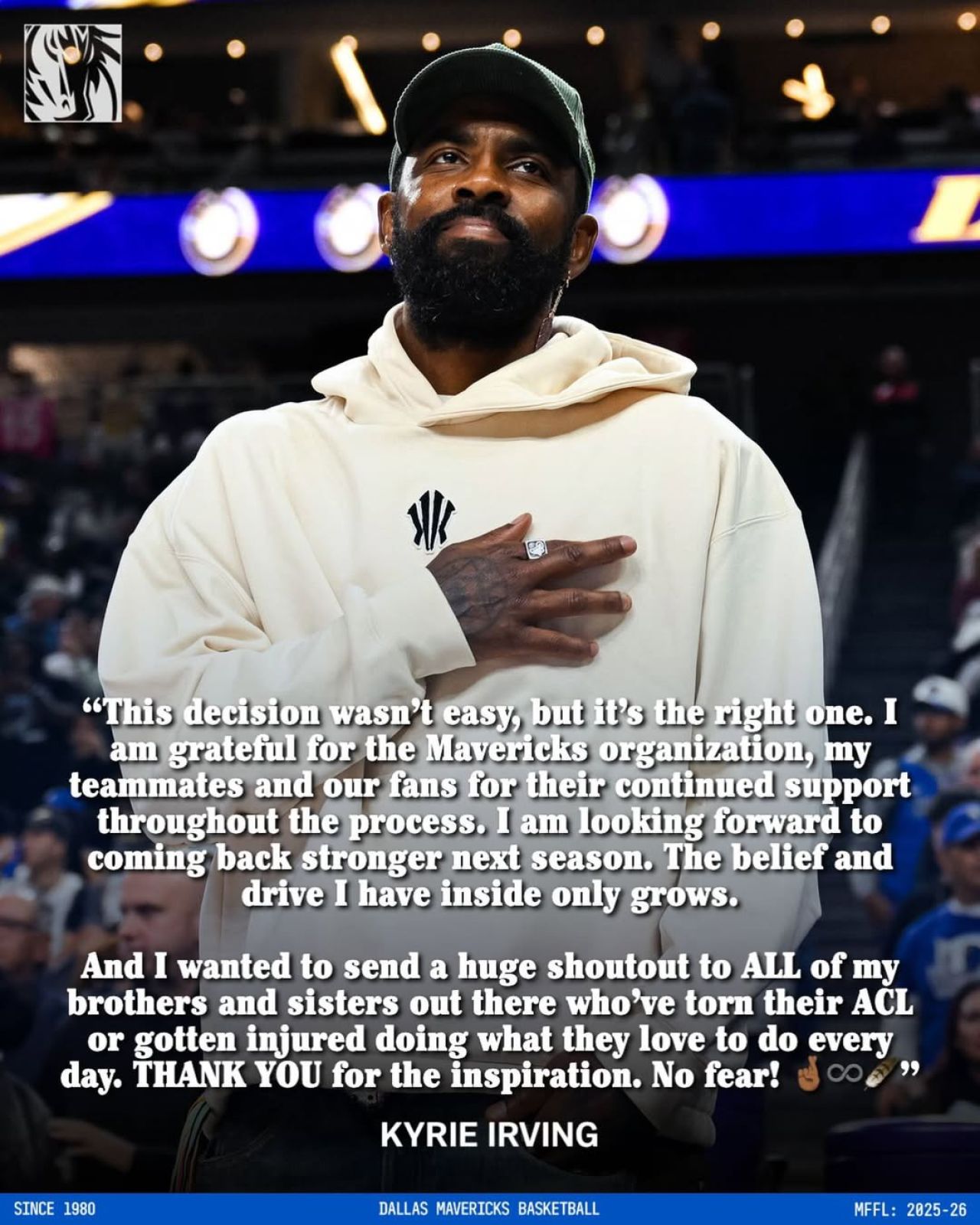 Dallas Mavericks star Kyrie Irving will miss the season to allow himself additional time to fully heal from the torn ACL he suffered last March. Irving will make his return for the 2026–27 season. pic.twitter.com/hfqAiRTPP4