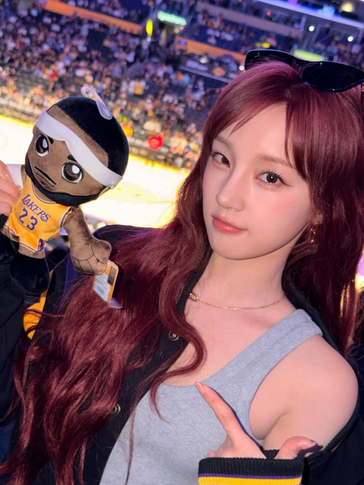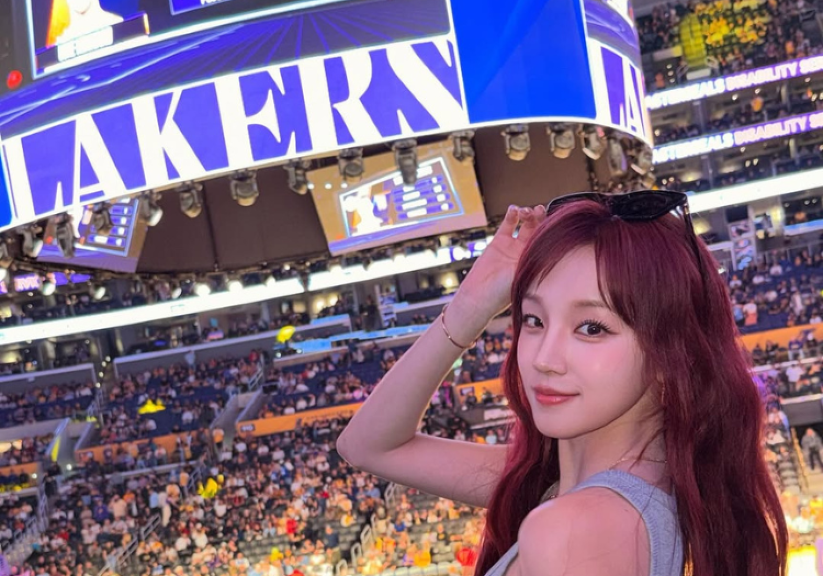 洛杉磯湖人隊(Los Angeles Lakers)的主場向來星光熠熠,而在近期的賽事中,場邊又多了一位重量級的「超級鐵粉」!韓國大勢女團 I-DLE 成員宋雨琦再度親臨現場,超近距離為偶像 LeBron James 應援,並親眼見證了球隊的一場大勝,掀起體壇與 K-pop 圈的熱烈話題。