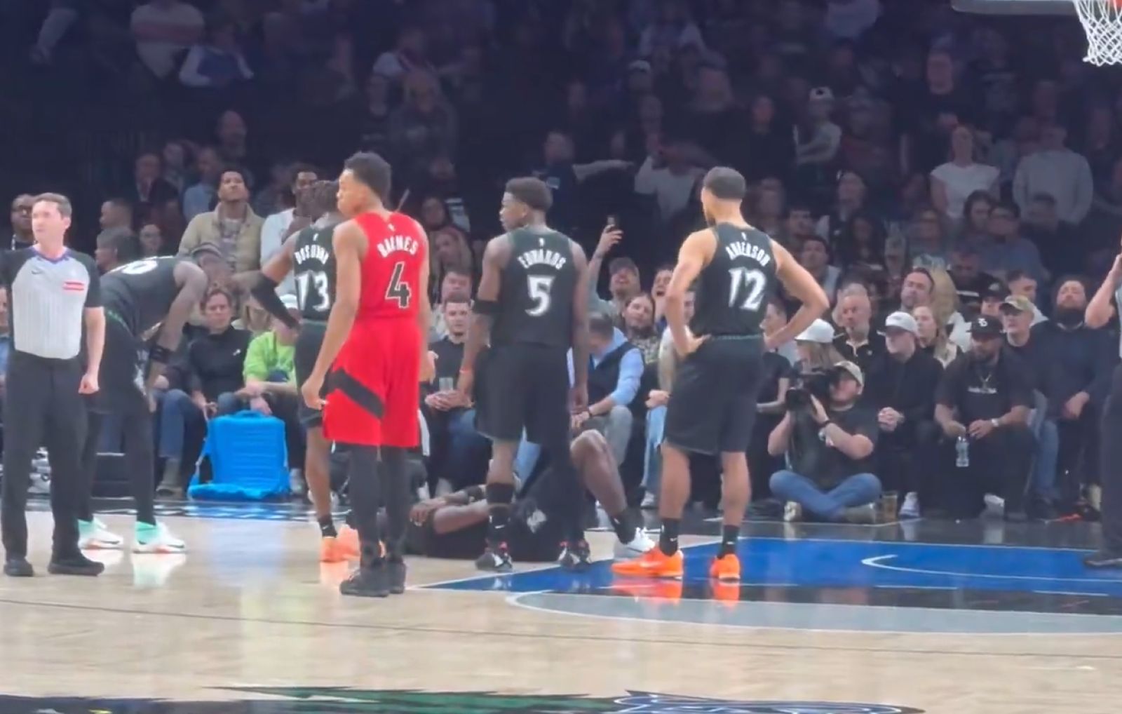 在 5 日火熱進行中的明尼蘇達灰狼隊與多倫多暴龍隊的例行賽中,場上發生了一幕令所有球迷揪心的突發傷情意外。灰狼隊重要的內線大將 Naz Reid 在第三節的一次激烈對抗中,不幸與對手發生手臂糾纏,當場痛苦倒地且久久無法自行起身,讓整場比賽的氣氛瞬間降至冰點。