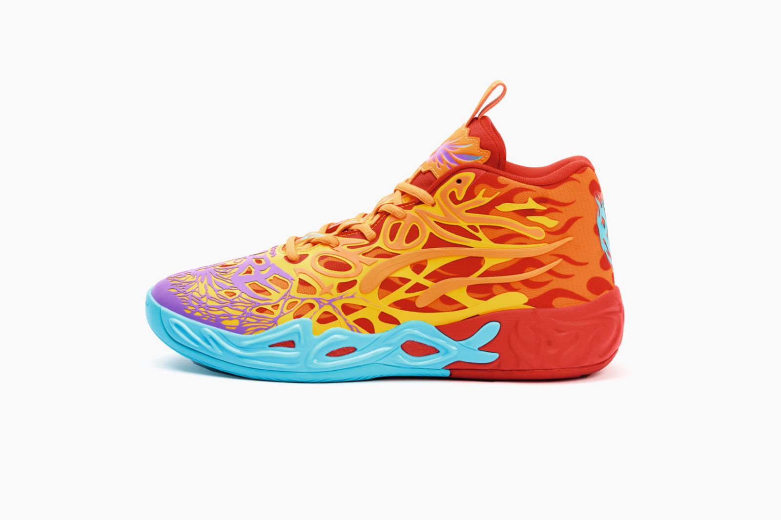 透過 5D 列印技術,呈現外星觸手般的立體層次結構,延展出如鳳凰振翅般的設計,增添視覺震撼力。MB.04 系列蘊含著「1 OF ONE」與「RARE」等專屬經典標誌設計,呼應 LaMelo 獨一無二的球場風格。鞋款以 PUMA 獨有的 NITROFOAM™ 氮氣中底科技,加上籃球鞋履專用 PUMAGRIP 橡膠耐磨大底帶來的強勁抓地力,讓球員在表現上如虎添翼,完美締造 「輕量」與「高緩衝」兩大機能巔峰。