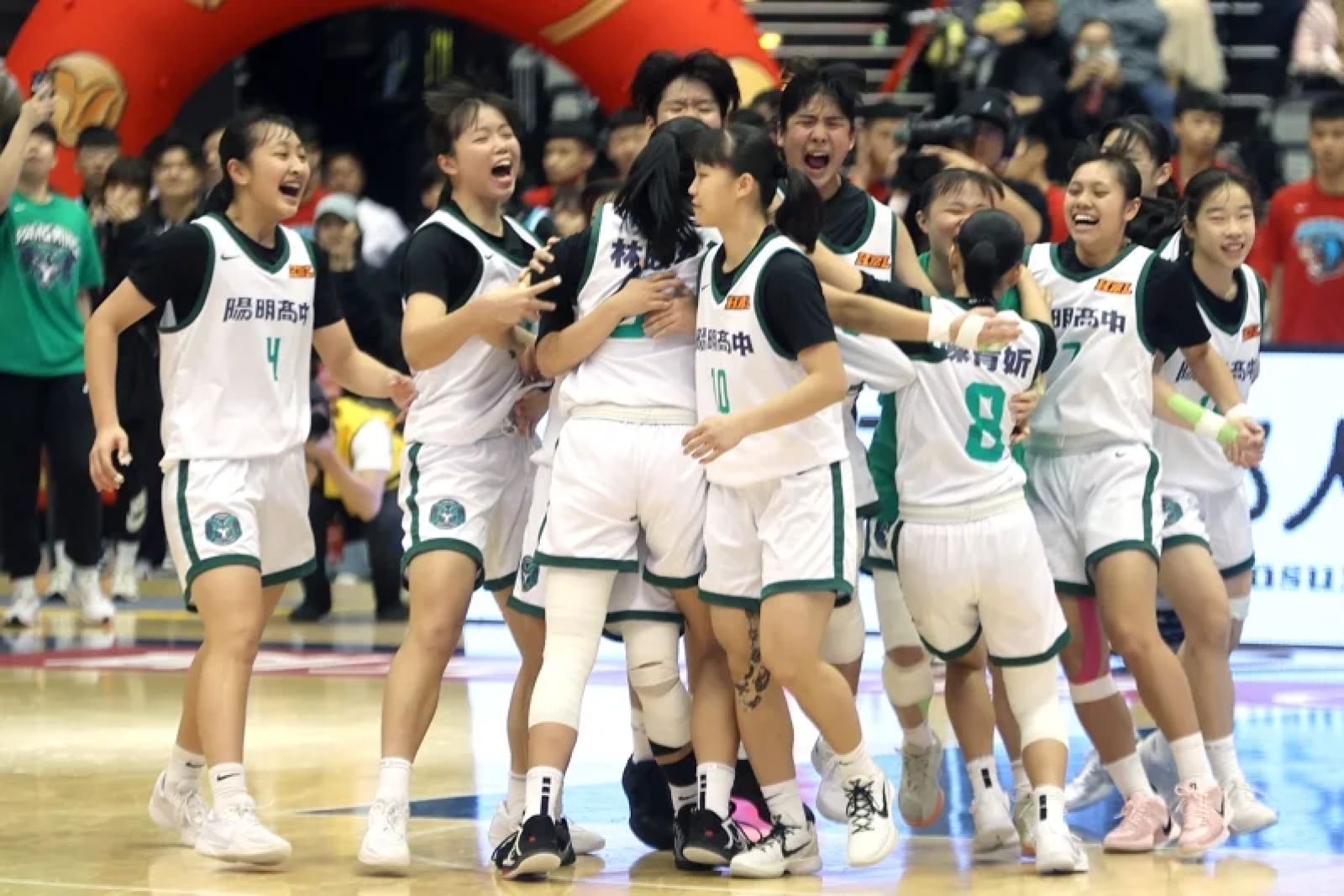 攻下陽明最高18分的何采琪獲選單場最有價值球員,賽後和隊友抱著教練李台英哭成一團,氣氛感人。