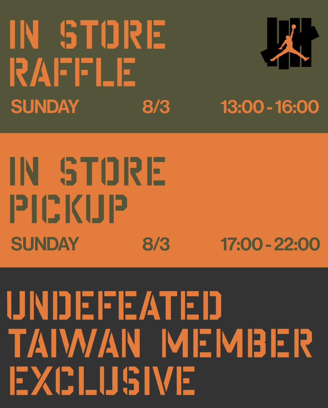 發售方式:8月3日限UNDEFEATED TAIWAN會員抽籤販售,詳情請加入UNDEFEATED TAIPEI/TAICHUNG官方Line帳號