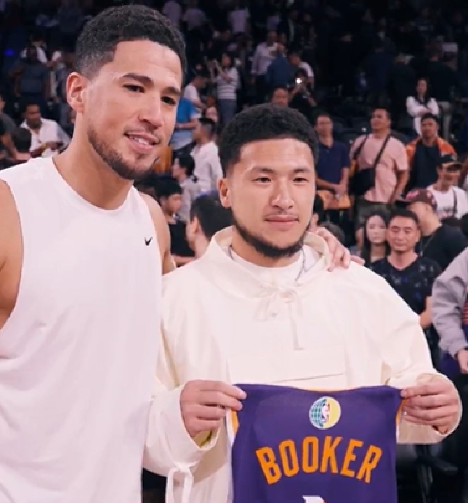當談到與「中文布克」見面的感受時,Devin Booker自己也表示這是一次很棒的機會:「能遇到中文布克真的很讚,這是社群媒體的誇張力量。當我第一次看到他影片時,我就認為這將是一個長遠的目標..就是我們將會相見。你知道這是個做這件事的最佳地點,我今天最後把我的比賽球衣給了他。」