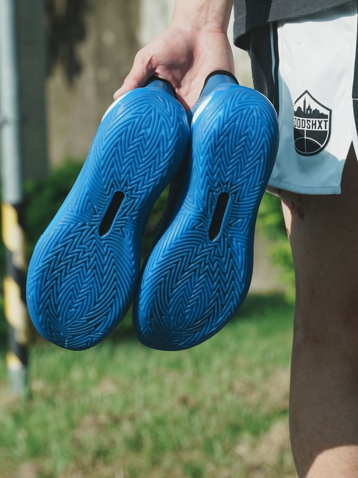 本鞋款的抓地系統採用 “TMK-GUARD 抓地系統”與“VPU Ultra Fine Contact 大底”設計,更加強化抓地力與變向穩定性。編輯在戶外水泥地籃球場外實戰後,不管是做出大跨步變向還是運球後的後仰跳投,都能感受到科技給予抓地力支持,同時大底在實戰中並不吸灰,室內外場實戰皆可行。