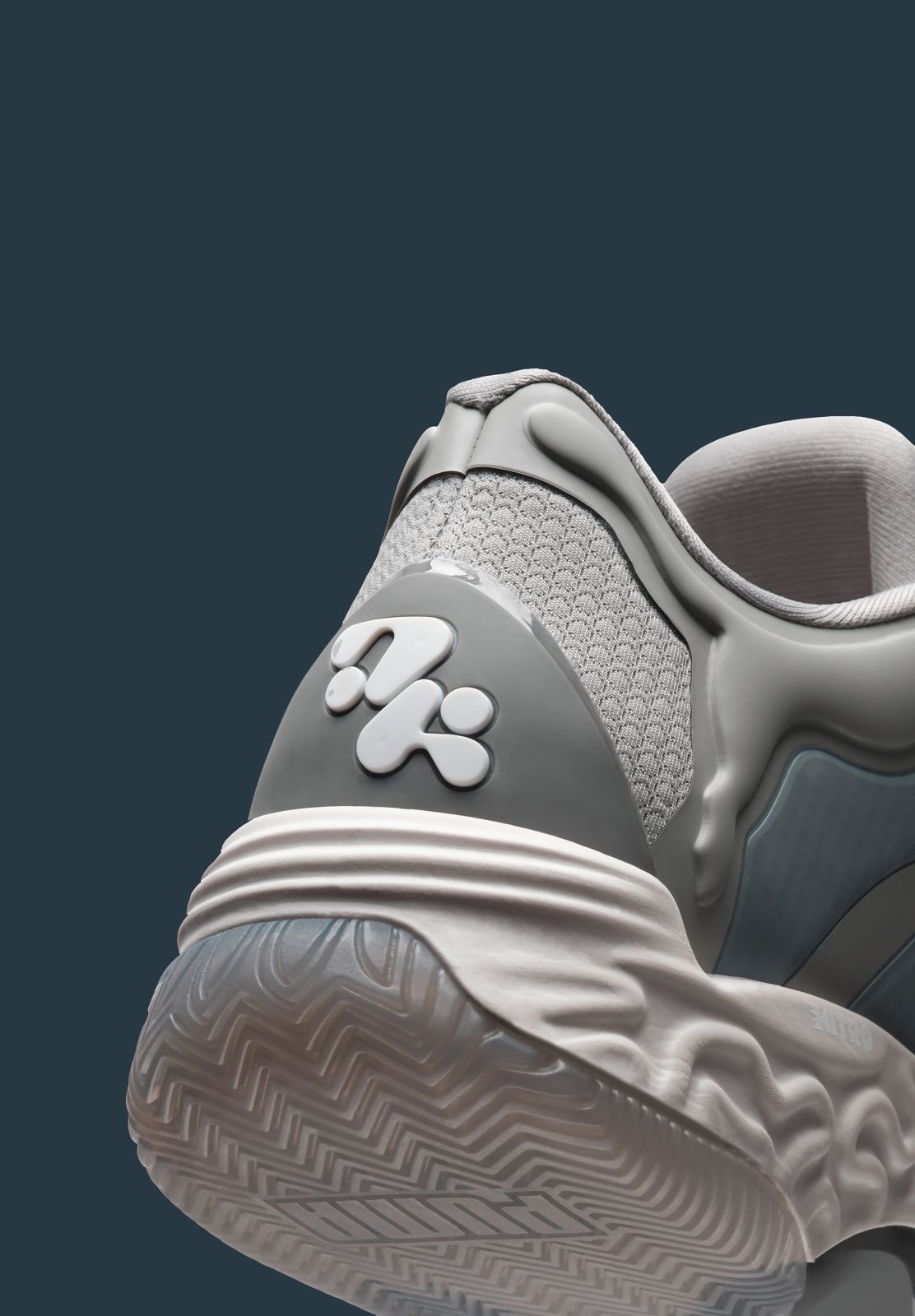 HALI 1由鬼才設計師Salehe Bembury親自操刀,推出煙燻灰SMOKE,整體以沉穩低調冷灰色調為主軸,鞋頭、鞋身、鞋側透過不同灰色做出層次的堆疊,搭配經典紋理設計,完美呼應Haliburton快節奏、多變化的場上打法;在細節上,鞋舌印有哈利伯頓專屬標誌TH,鞋側則點綴經典跳豹 Logo,讓這雙「絕殺戰靴」在球場內外皆具高度辨識度。