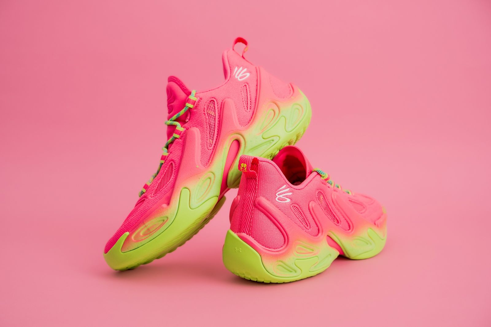 CURRY 13「Will Harris」粉綠配色則以主角山羊Will Harris比賽鞋款為靈感。圖/UNDER ARMOUR