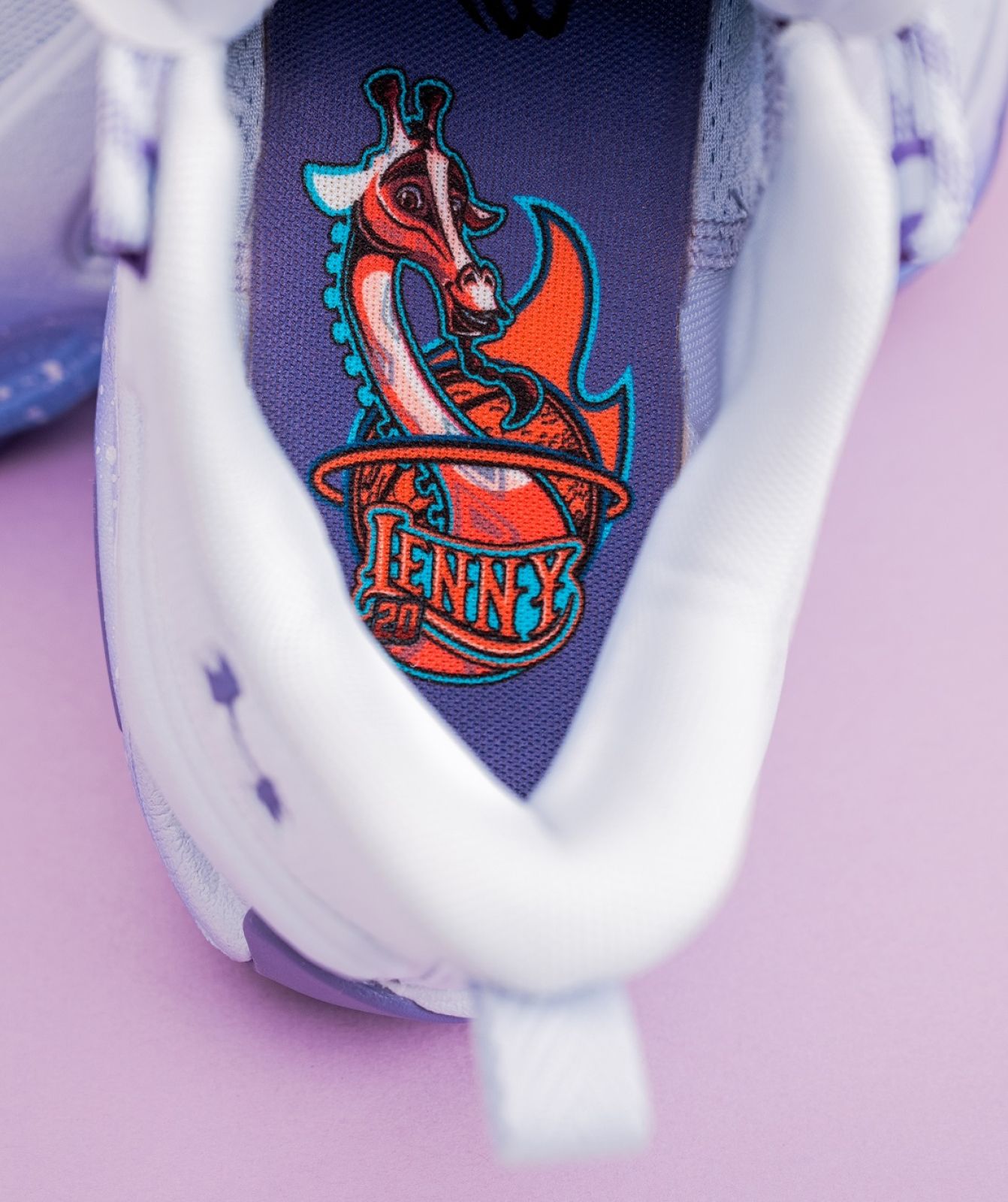 「Will Harris」粉綠配色則以主角山羊Will Harris比賽鞋款為靈感,詮釋堅持與突破極限的奮戰精神;紫色「Lenny」配色則來自由Stephen Curry親自配音的長頸鹿角色Lenny,象徵沉穩節奏與場上掌控力,展現智慧與領導氣質。除了外觀配色外,三款《山羊巔峰》主題鞋款的鞋墊皆藏有對應角色圖案細節,為設計增添收藏價值!